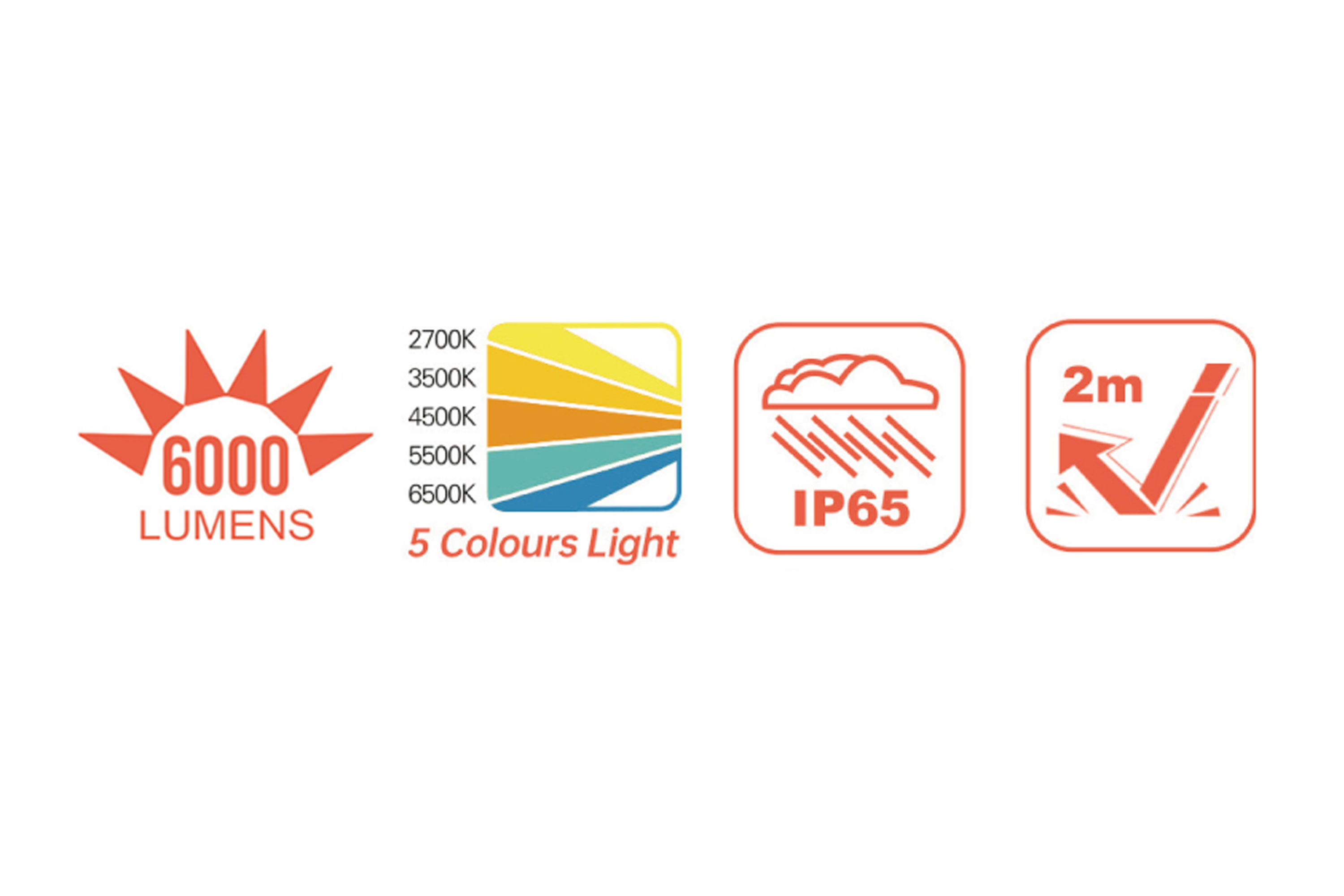 - Lichtfarben: 2700K / 3500K / 4500K / 5500K / 6500K