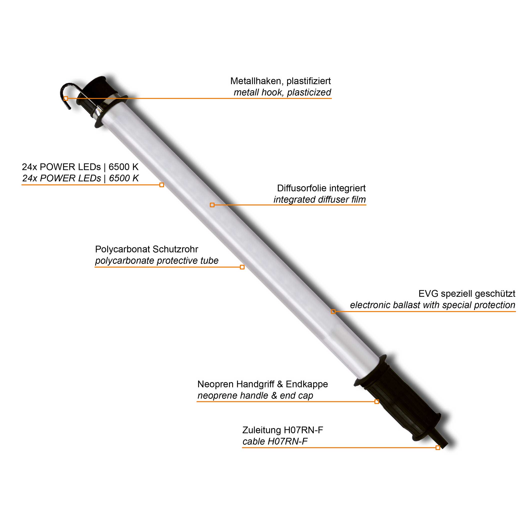- Protection tube: polycarbonate, shock-resistant, 50 mm Ø